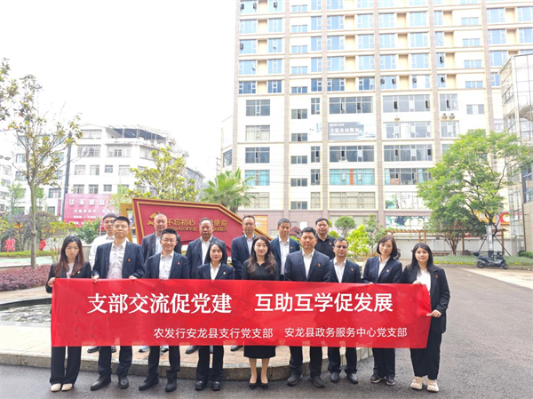 近日,农发行安龙县支行党支部与安龙县政府服务中心党支部开展了“支部交流促党建,互助互学促发展”联合主题党日活动。