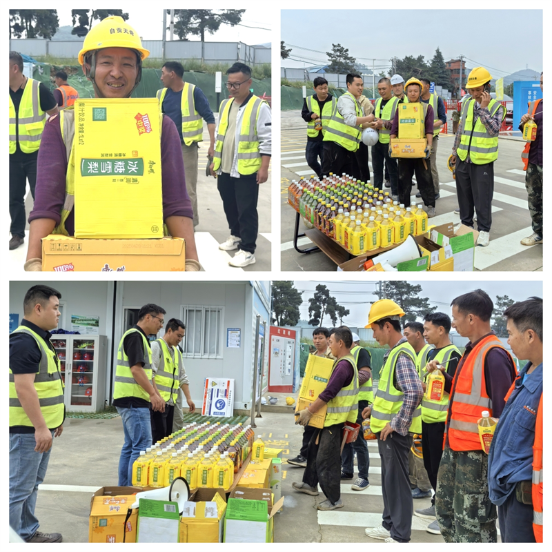 在严抓安全的同时,项目以“三个到位”落实人文关怀。防暑物资到位,6月8日开展“夏日送清凉”活动,为一线工友发放藿香正气水、冰红茶等防暑物资500余份。作息调整到位,采取“做两头、歇中间”模式,避开11:00-14:00高温时段作业。激励措施到位,持续开展“行为安全之星”评选,对安全表现突出的人员给予物质奖励和荣誉表彰,激发全员参与安全管理的内生动力。