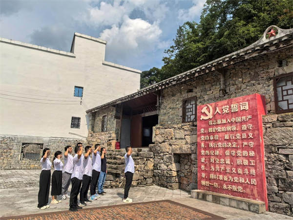 近日,为进一步增强党员干部的理想信念和使命担当,农发行贵州省望谟县支行党支部组织全体党员干部赴册亨县冗渡镇坛坪村红色教育基地,开展“传承革命精神,强化责任担当”主题党日活动。 坛坪村作为革命老区,拥有深厚的红色底蕴。活动伊始,全体党员顶着烈日重走“长征路”,大家跟随讲解员的步伐从红军桥步行至陈列馆,途中聆听了红军桥的来历以及红军故事,尤其是军民鱼水情深的感人事迹。 随后,党员干部们怀着崇敬的心情,在讲解员的引导下,认真参观了坛坪村红色文化陈列馆。馆内翔实的历史资料、珍贵的革命文物、生动的历史图片,全景式展现了红军长征经过册亨、特别是途经坛坪村时播撒革命火种、与当地群众结下深厚情谊的峥嵘岁月。大家驻足凝视着一件件斑驳的蓑衣、一封封泛黄的家书、一段段感人的文字,深刻感受革命先辈们在极端艰苦条件下,为民族解放和人民幸福抛头颅、洒热血的坚定信仰与无畏精神。 在庄严肃穆的氛围中,全体党员重温入党誓词。铿锵有力的誓言在纪念馆内回荡,表达了大家不忘初心、牢记使命,为党的事业奋斗终身的坚定决心。 此次主题党日活动是一次深刻的思想淬炼和精神洗礼。通过沉浸式的学习体验,该行全体党员干部对党的光辉历程和伟大精神有了更直观、更深刻地认识。大家纷纷表示,要继承和发扬党的优良传统和作风,以更加饱满的热情做好各项工作。(唐燕) |
